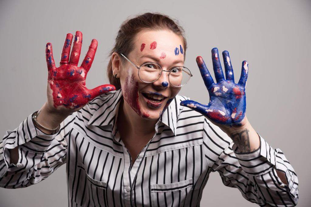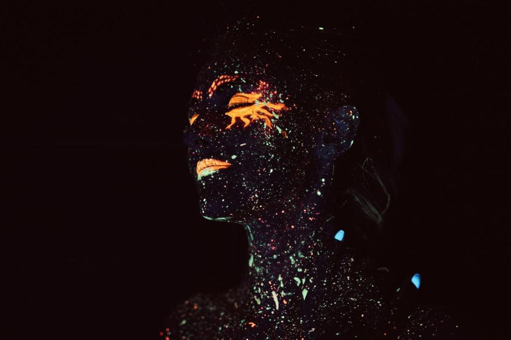 Stage lighting exaggerates some hues and swallows others, so expressive body art thrives on purposeful contrast. Embrace saturated primaries, grounded neutrals, and tested palettes under warm tungsten and cool LEDs. Try swatching color wheels backstage, then ask your lighting designer to run cues while you assess readability from various seats.